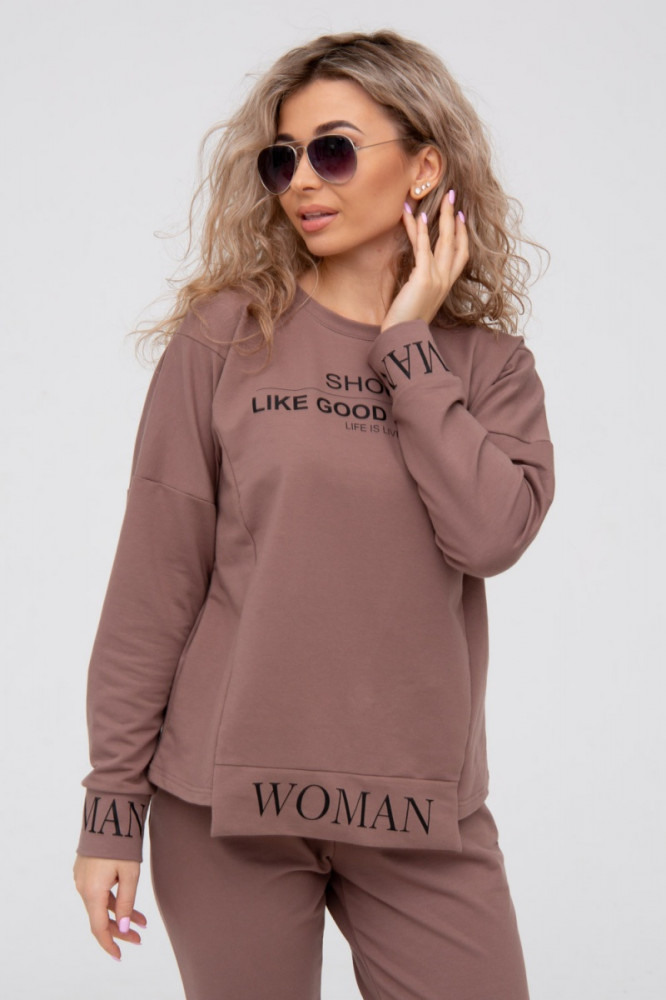 Когда увидела этот костюмчик мне он очень понравился и я его купила! Очень тяжело покупать когда ты не можешь померить,потрогать,посмотреть его,долго решала какой взять размер,обычно беру 48 но взяла 50 размер. С размером не ошиблась,если взяла бы 48 был бы в натяжку. Но есть одно,но, швы прострочены ужасно как будто спешили сшить!!!!!!! Пришлось идти в ателье прошивать!!!!