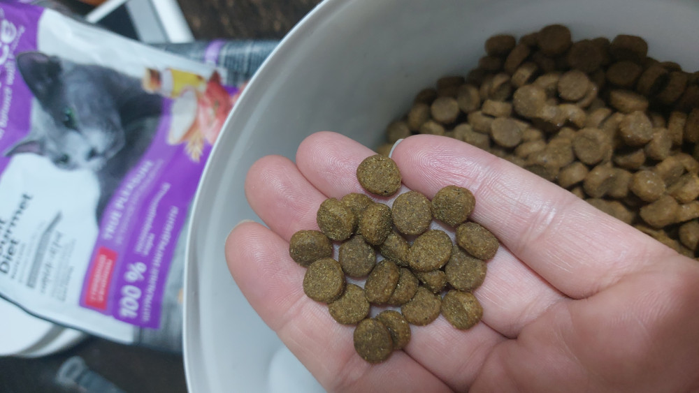 Всё нормально, доставка быстрая. Ещё не давала, но этой марки берём разного вкуса,коту на пользу для пищеварения, потому что раньше были проблемы с этим и ветеринар посадила на эту марку корма.