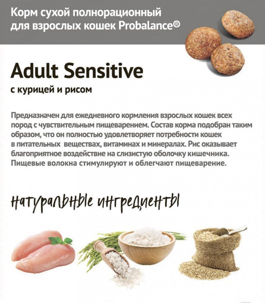 Probalance Корм для кошек с чувствительным пищеварением с курицей и рисом