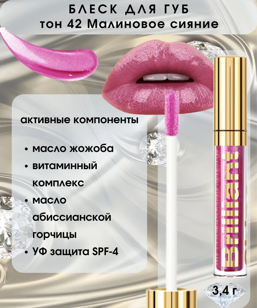Charme Блеск для губ питательный «Brilliant Shine», тон 42 Малиновое сияние