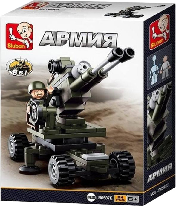 SLUBAN Конструктор «Зенитная установка»В данный момент этот товар отсутствует в продаже. Возможно, у нас найдется аналогичный или похожий товар здесь. Серия: Армия Конструктор Sluban из серии «Армия» позволит ребенку собственными руками собрать зенитную установку. Набор дополняет фигурка солдатика, который умело управляет им. Простое и надежное соединение деталей разных размеров и форм между собой обеспечат специальные крепления. Во время игры ребенок сможет задействовать свою фантазию и придумать интересные сценарии. В процессе сборки и игры с готовой моделью юный конструктор будет развивать мелкую моторику рук, пространственное мышление, внимательность и усидчивость. Длина собранной зенитной установки — 7,2 см. |