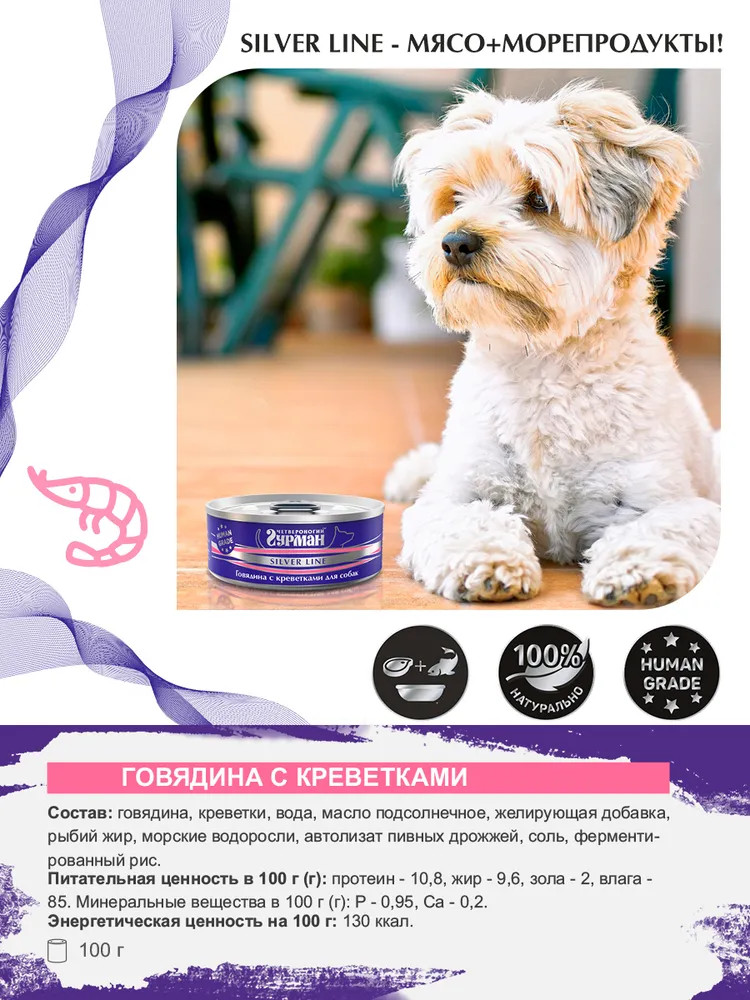 Четвероногий гурман Корм для собак «Говядина с креветками»