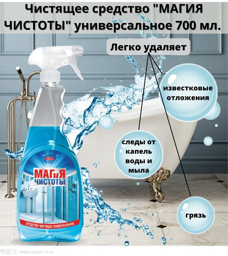 Жидкое средство предназначено для чистки и ухода за ванными, душевыми кабинами, кранами, керамической плиткой. Легко удаляют известковые отложения, грязь, следы от капель воды и мыла. |