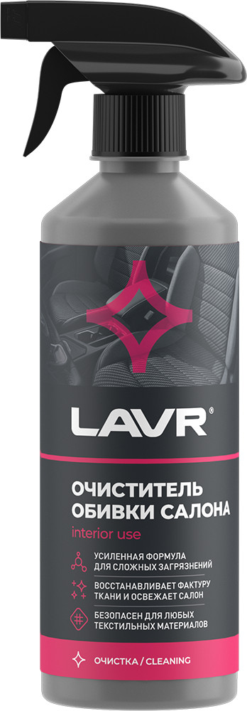 Очиститель обивки салона «LAVR» — средство для эффективной очистки текстильной обивки сидений, потолков, дверей и ковриков автомобиля, также подходит для использования в быту. Обильная пена удаляет даже сложные загрязнения. Безопасен для всех видов тканей обивки, пластика и искусственной кожи.