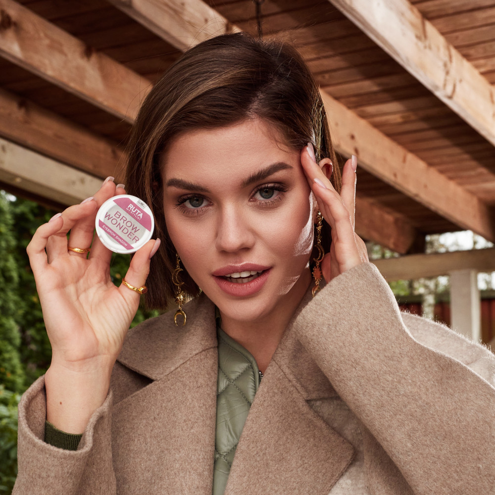Кремово-пудровая текстура ложится равномерно и точно, позволяя прорисовать четкие контуры бровей или создать естественную растушевку цвета.