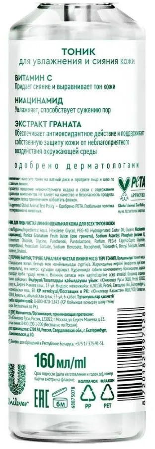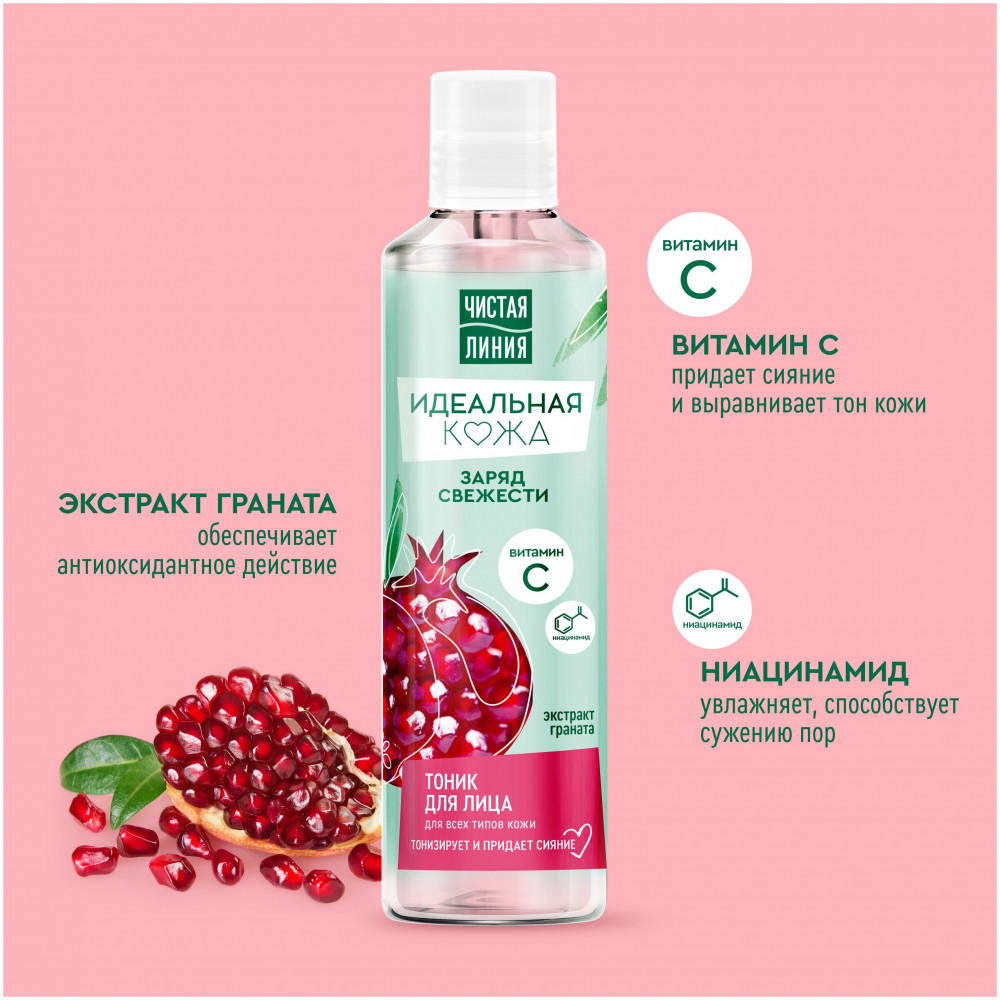 Чистая линия Тоник для лица с экстрактом граната+54 аромат не липкий