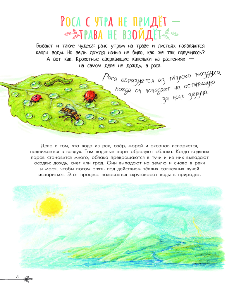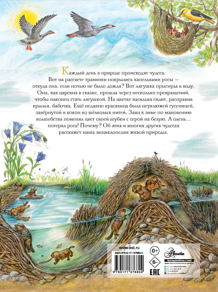 💳 Оплатить за товар можно при получении 🇰🇿 Есть бесплатная доставка по Казахстану от 1 дня 🎁 Копите бонусы с каждой покупки Серия: Познавательное чтение в картинках Книга Виктории Царинной «Чудеса природы. 50 историй в картинках для детей» расскажет о том, как удивительно устроен окружающий нас мир. Вы узнаете, почему после дождя видна радуга, как паук плетёт свою сеть, можно ли определить время по цветам на опушке, как получается мёд у пчёл, как лосось ориентируется в реке и не сбивается с пути, для чего летят на юг перелётные птицы, какие звери впадают в зимнюю спячку, почему желтеют листья и ещё многое другое. Множество ярких иллюстраций на каждой странице познакомят ребят с обитателями лесов, степей, пустынь и океанских глубин. А короткие познавательные тексты |