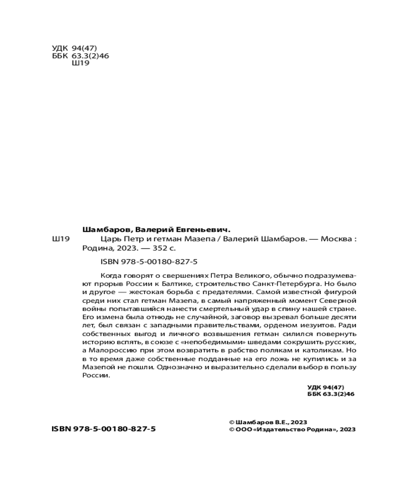 Царь Пётр и гетман МазепаВ данный момент этот товар отсутствует в продаже. Возможно, у нас найдется аналогичный или похожий товар здесь. Серия: Русская история в заговорах и изменах Когда говорят о свершениях Петра Великого, обычно подразумевают прорыв России к Балтике, строительство Санкт-Петербурга. Но было и другое — жестокая борьба с предателями. Самой известной фигурой среди них стал гетман Мазепа, в самый напряженный момент Северной войны попытавшийся нанести смертельный удар в спину нашей страны. Его измена была отнюдь не случайной, заговор вызревал больше десяти лет, был связан с западными правительствами, орденом иезуитов. Ради собственных выгод и личного возвышения гетман силился повернуть историю вспять, в союзе с «непобедимыми» шведами сокрушить русских, а Малороссию при этом возвратить в рабство полякам и католикам. Но в то время даже собственные подданные на его ложь не купились и за Мазепой не пошли. Однозначно и выразительно сделали выбор в пользу России. |
