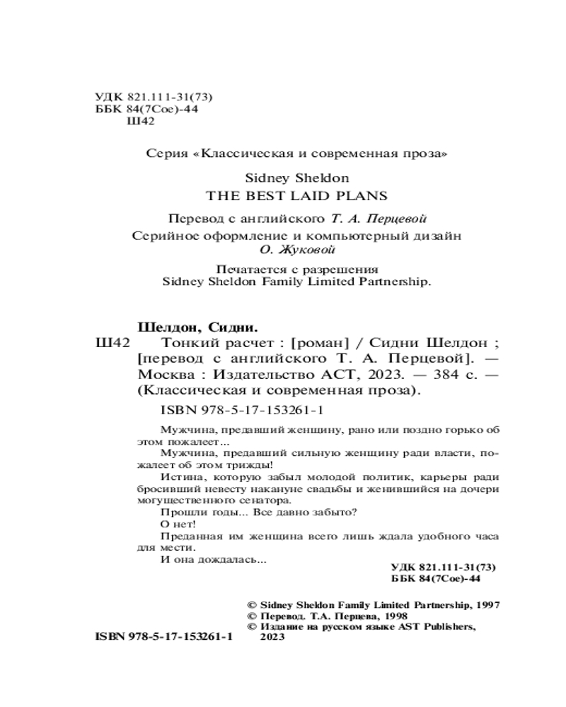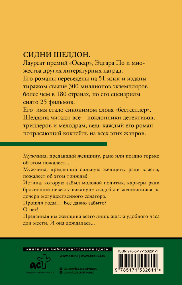 💳 Оплатить за товар можно при получении 🇰🇿 Есть бесплатная доставка по Казахстану от 1 дня 🎁 Копите бонусы с каждой покупки Серия: Классическая и современная проза (нов) Мужчина, предавший женщину, рано или поздно горько об этом пожалеет... Мужчина, предавший сильную женщину ради власти, пожалеет об этом трижды! Истина, которую забыл молодой политик, карьеры ради бросивший невесту накануне свадьбы и женившийся на дочери могущественного сенатора. Прошли годы... Все давно забыто? О нет! Преданная им женщина всего лишь ждала удобного часа для мести. И она дождалась... |