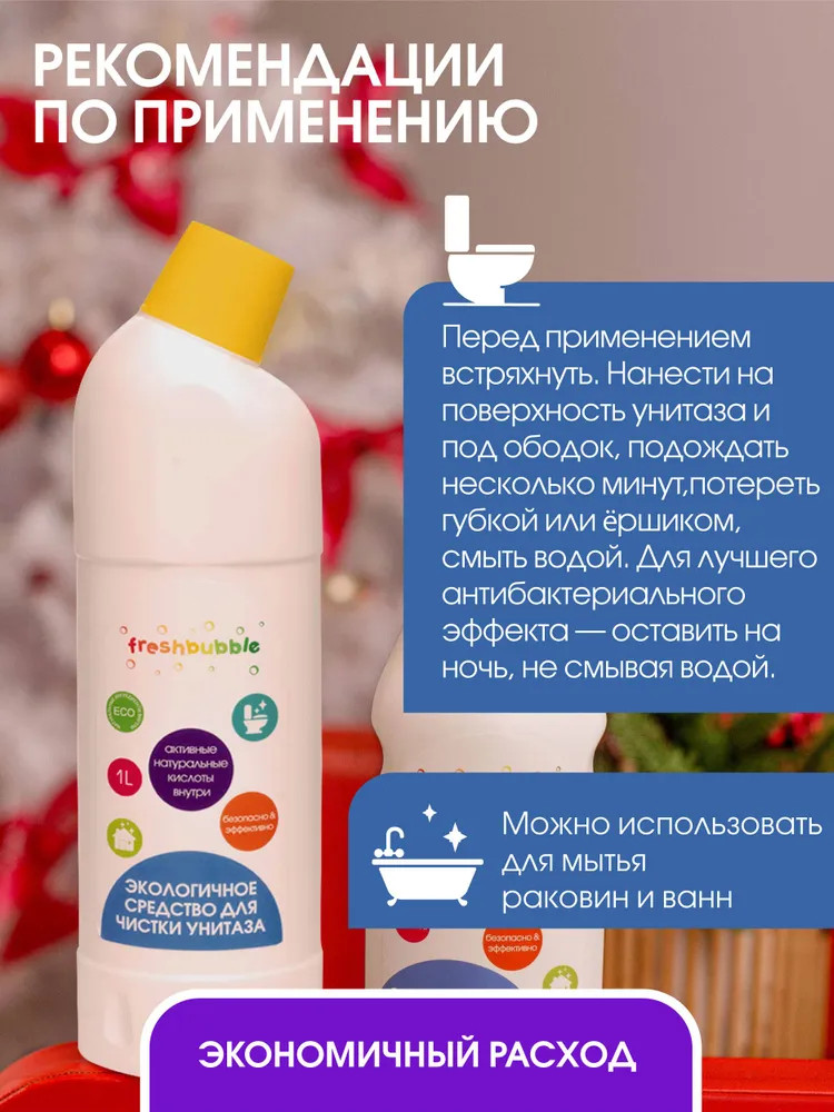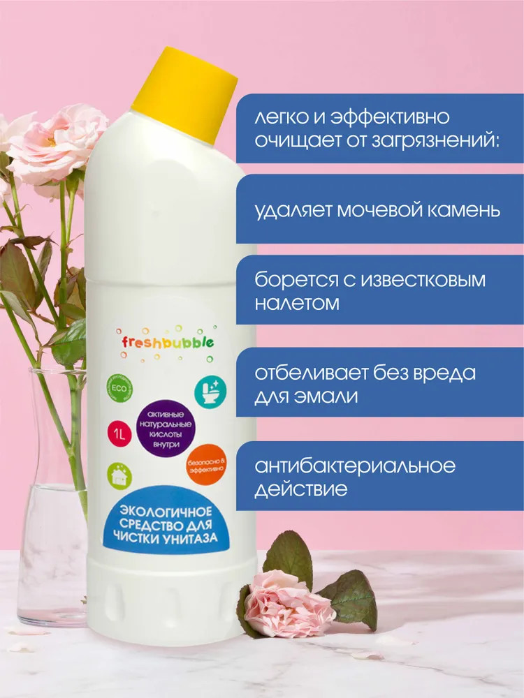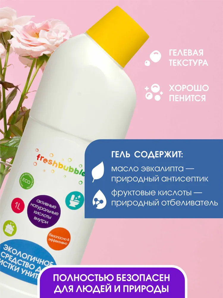 💳 Оплатить за товар можно при получении 🇰🇿 Есть бесплатная доставка по Казахстану от 1 дня 🎁 Копите бонусы с каждой покупки Серия: Freshbubble Абсолютно натуральный гель с эфирным маслом эвкалипта — природным антисептиком. Средство легко и эффективно очищает от загрязнений, удаляет мочевой камень и известковый налет. Благодаря гелевой текстуре оно экономично расходуется и хорошо пенится. Высокоэффективная формула с фруктовыми кислотами не содержит хлора, нефтепродуктов и других вредных для здоровья человека и окружающей среды ингредиентов. |