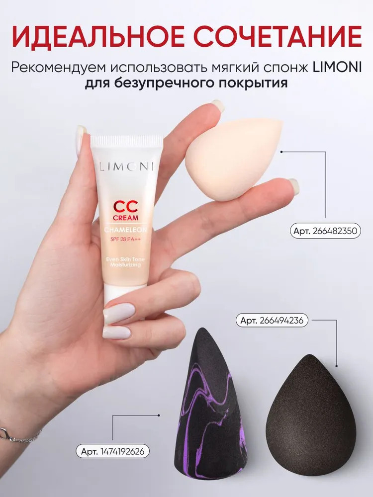 Limoni СС-крем для лица корректирующий «Chameleon» SPF 28-35% +162 легкая текстура выравнивает тон увлажнение