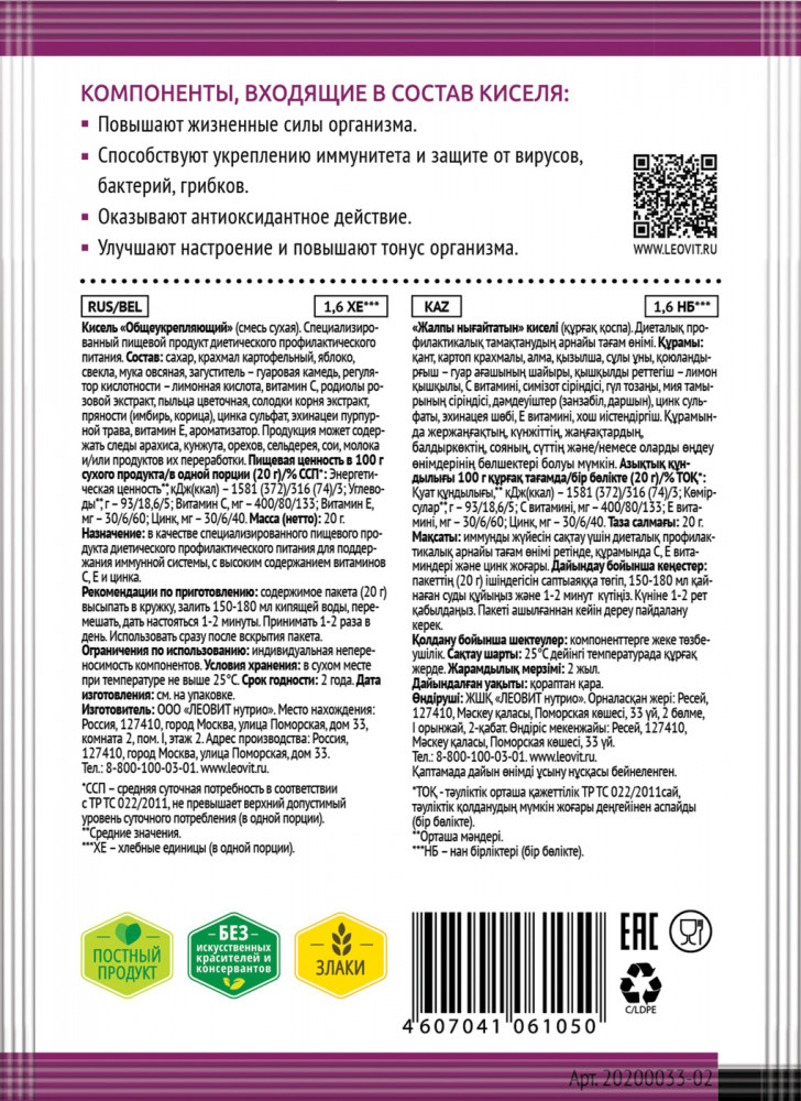 | Леовит нутрио Кисель «Общеукрепляющий»+17 (бонусов)