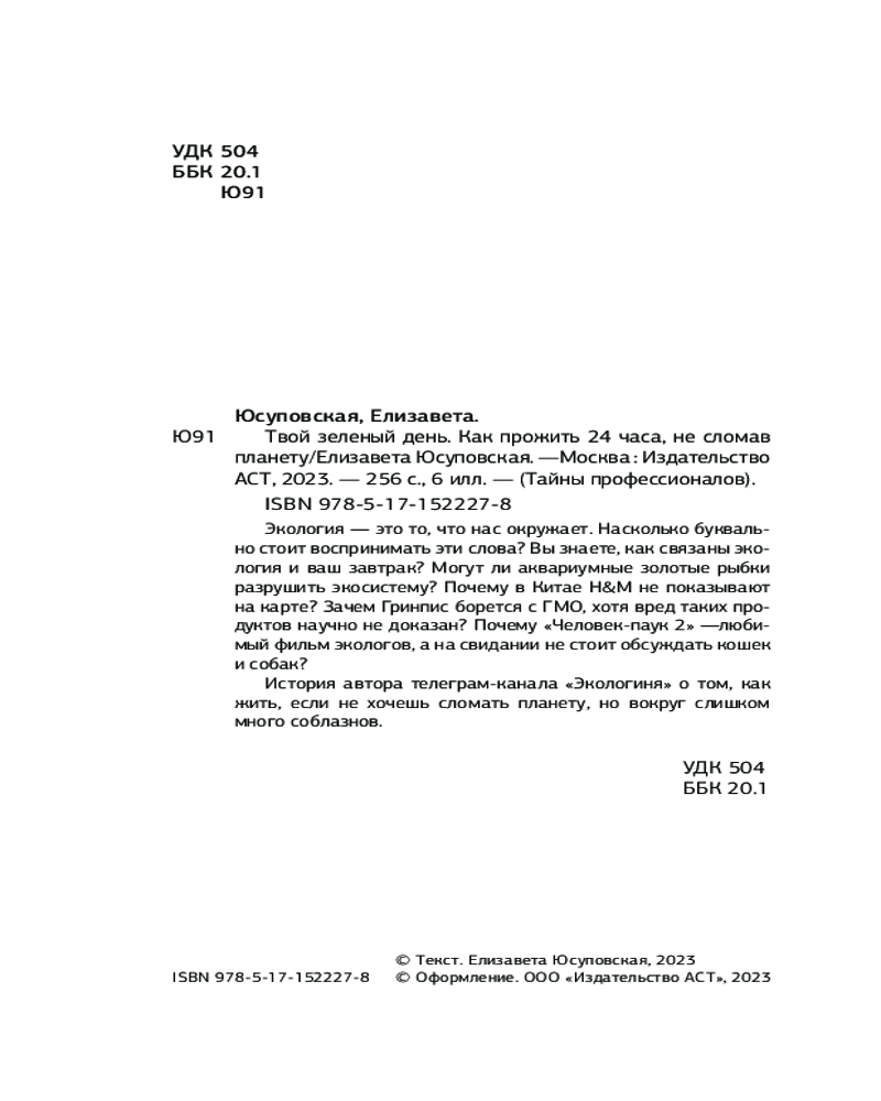 💳 Оплатить за товар можно при получении 🇰🇿 Есть бесплатная доставка по Казахстану от 1 дня 🎁 Копите бонусы с каждой покупки Серия: Тайны профессионалов Елизавета Юсуповская — автор популярного телеграмм-канала «Экологиня» @ecomisli 64.2 тыс.подписчиков. Она рассказывает о нашей планете, о мире животных и растений, об экологических проблемах и способах их решения. А ещё Елизавета делится весёлыми шутками, историями из личного опыта о том, как не просто быть Экологией. |