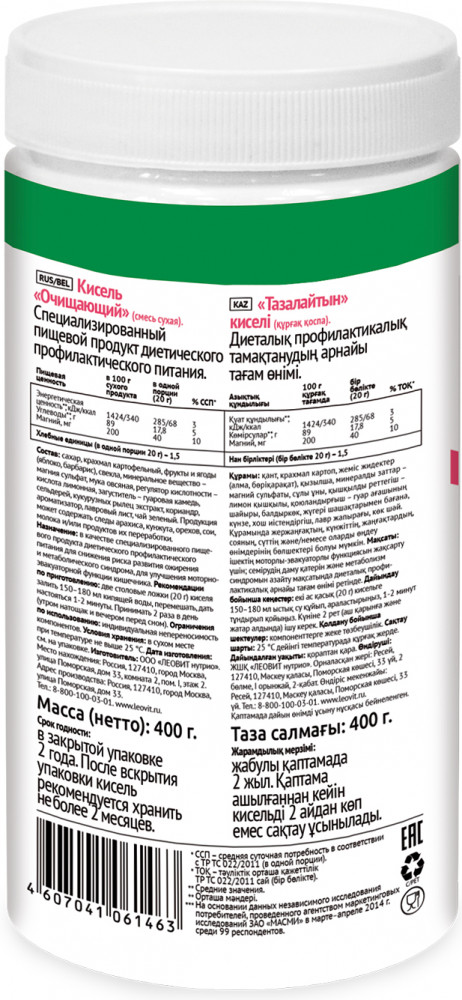 💳 Оплатить за товар можно при получении 🇰🇿 Есть бесплатная доставка по Казахстану от 1 дня 🎁 Копите бонусы с каждой покупки Кисель «Очищающий» — вкусный и полезный напиток. Попробуйте кисель! Он такой же вкусный, как и домашний. Приготовили его из ягод и фруктов, а также соков и пюре из них, добавив овсяную муку и компоненты, обладающие обволакивающим действием (сельдерей), желчегонным и мочегонным действием (экстракт кукурузных рылец). Получилось и вкусно, и полезно. |