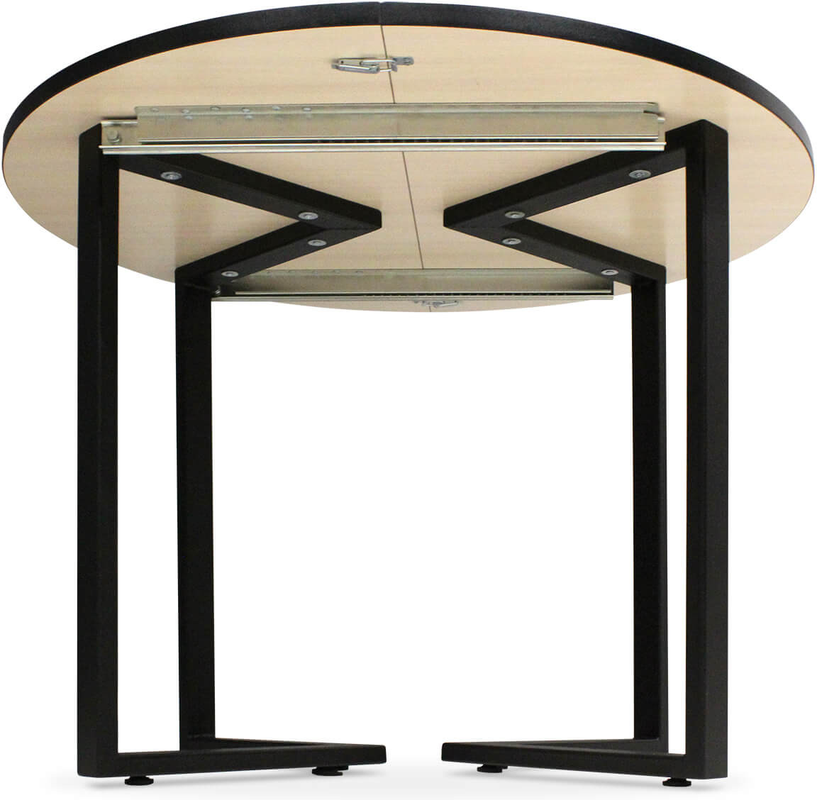 • прочность и долговечность — прочная столешница из МДФ 22 мм со слоем декоративного пластика HPL 1,2 мм. Надежное металлическое основание окрашено порошковой краской, устойчивой к механическому воздействию. Каркас выполнен из трубы 50 × 25 мм толщиной 1,2 мм. В сложенном состоянии стол умещает 4 человека, а в разложенном до 6 человек. Выдерживает продолжительные нагрузки — максимальная статическая нагрузка до 50 кг;