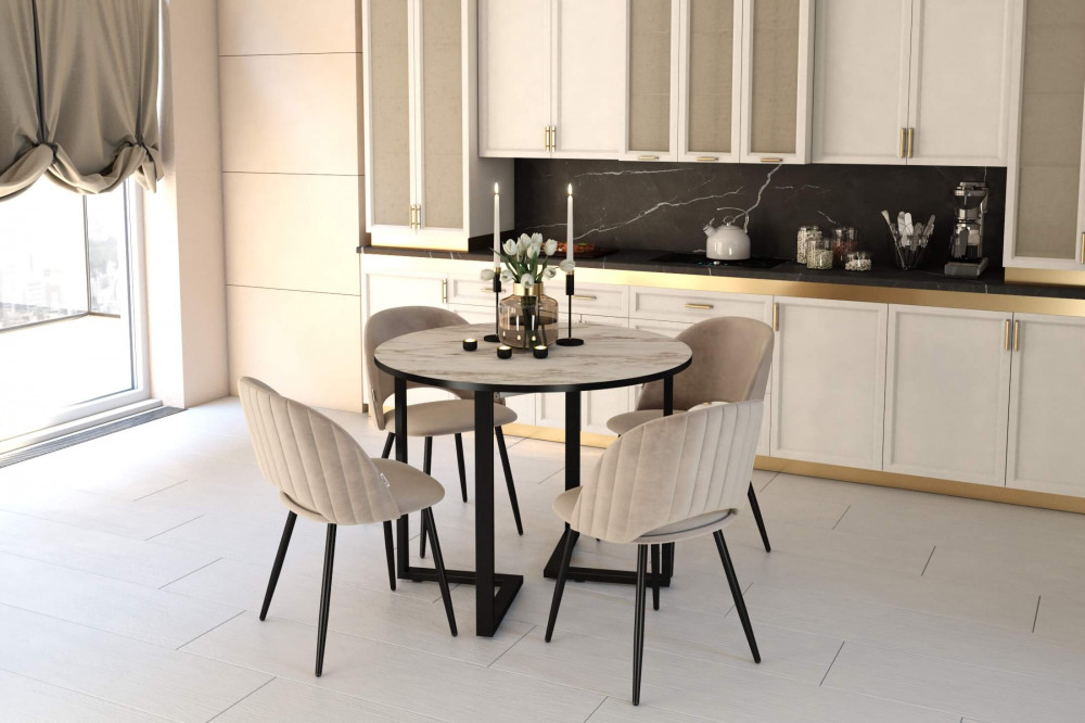 • дизайн и эстетика — необычный дизайн ножек не только добавляет в интерьер ломаных линий, но и позволяет сэкономить пространство для ног. Выпуклый рисунок натурального камня на столешнице отлично дополнит классический интерьер обеденной зоны;
