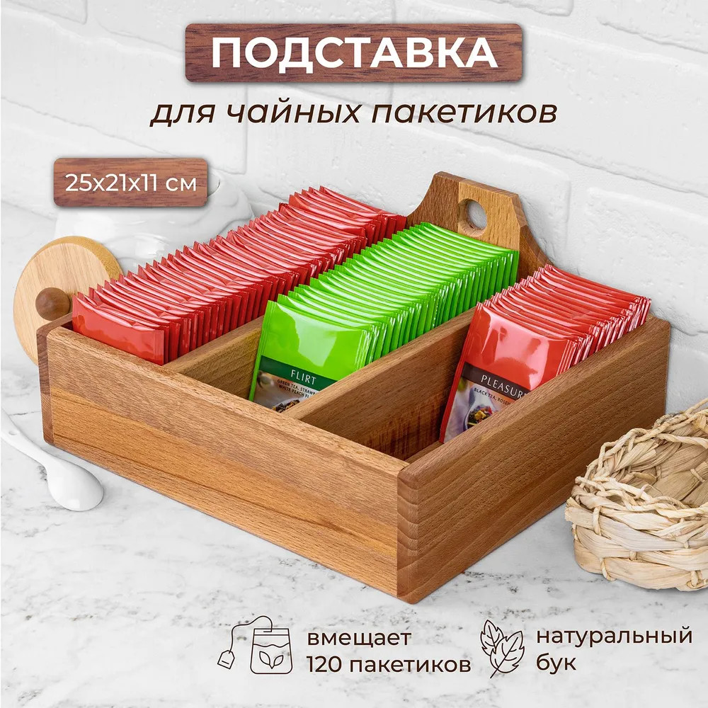 💳 Оплатить за товар можно при получении 🇰🇿 Есть бесплатная доставка по Казахстану 🎁 Копите бонусы с каждой покупки Подставка для чайных пакетиков выполнена из натурального дерева бука. Такой органайзер станет функциональным аксессуаром кухни и украшением интерьера. |