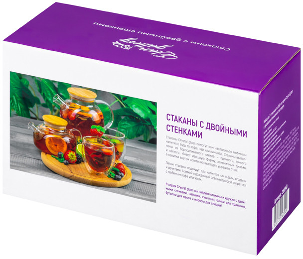 💳 Оплатить за товар можно при получении 🇰🇿 Есть бесплатная доставка по Казахстану от 1 дня 🎁 Копите бонусы с каждой покупки Серия: Crystal glass Набор из 2-х стаканов «Crystal glass» по 350 мл поможет провести множество уютных чаепитий или приятных завтраков с любимым кофе. Стаканы с двойными стенками выполнены из термостойкого боросиликатного стекла, а внутри имеют декоративный наполнитель в форме звездочек. Стаканы подходят как для холодных, так и горячих напитков: воды, лимонада, коктейлей, чая, эспрессо, капучино, латте, глинтвейна. Благодаря специальной конструкции внешняя сторона не нагревается и не охлаждается, если налить внутрь кипяток или ледяную воду. Напитки в прозрачных стаканах выглядят яркими и красивыми. Стильные пиалы смогут стать чайным или кофейным набором на 2 персоны. Необычный набор поможет организовать эстетичную сервировку стола. Не подходят для СВЧ и ПММ из-за особенностей конструкции. Поставляются в стильной картонной упаковке. Стеклянные жаропрочные стаканы из серии посуды «Crystal glass» смогут стать настоящим украшением кухни и дома или приятным подарком для ваших родных и близких. |