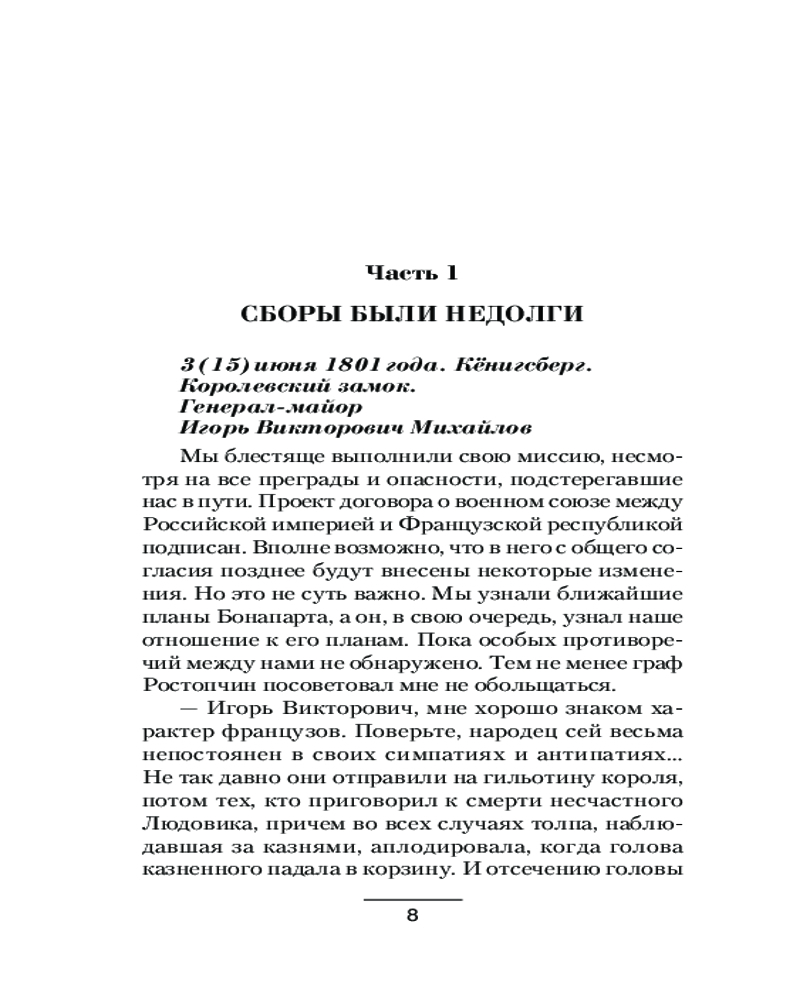 💳 Оплатить за товар можно при получении 🇰🇿 Есть бесплатная доставка по Казахстану от 1 дня 🎁 Копите бонусы с каждой покупки Серия: Военная фантастика Императора Павла I спасла от смерти группа спецназовцев ФСБ. Как она попала из века XXI в век XIX — неизвестно. но факт остается фактом — люди из будущего активно вмешались в ход исторических событий. Заговор, который в нашей истории закончился убийством царя, провалился. Британская эскадра под командованием адмирала Нельсона наголову разбита при Ревеле, а Первый консул Франции Наполеон Бонапарт подписал с Россией союзный договор, после чего объединенное русско-французское войско стало готовиться к походу в Индию. |