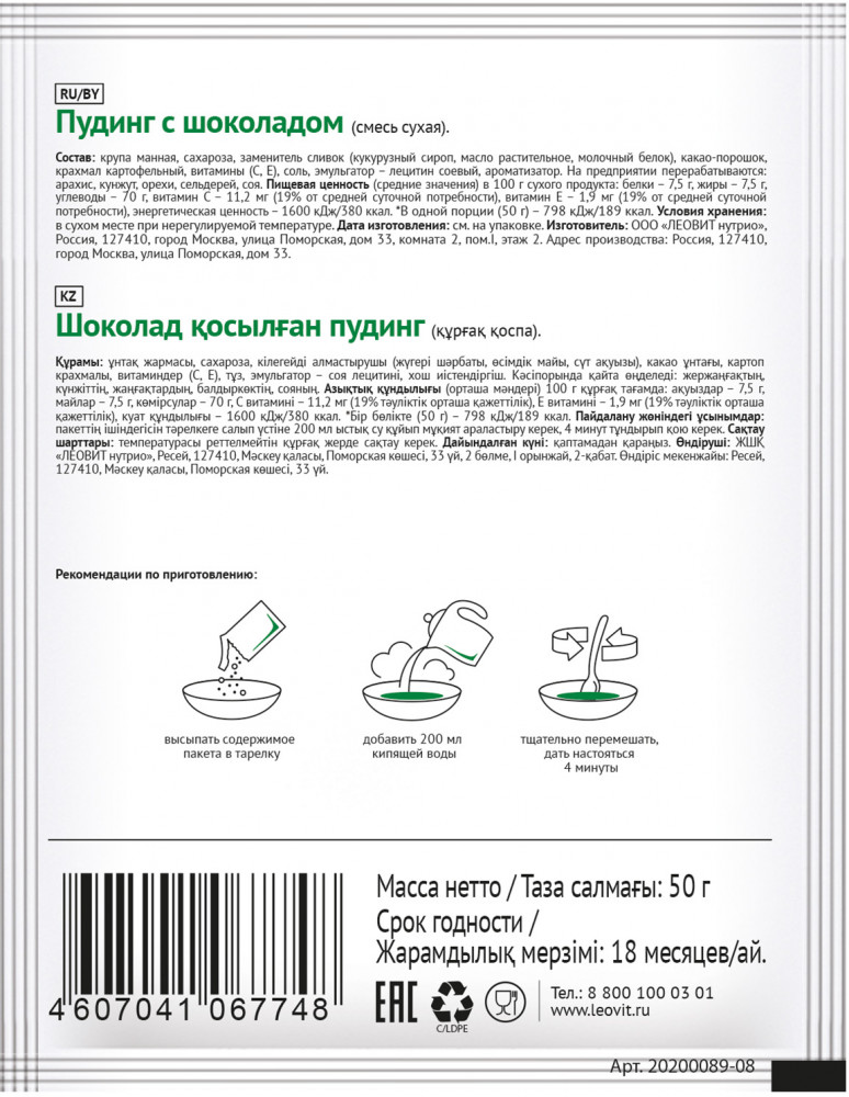 💳 Оплатить за товар можно при получении 🇰🇿 Есть бесплатная доставка по Казахстану от 1 дня 🎁 Копите бонусы с каждой покупки Насладитесь полезным десертом от Леовит, который объединил в себе насыщенный шоколадный вкус и пользу природных антиоксидантов. Лакомство не только принесет удовольствие, но и поможет укрепить здоровье и поддержать молодость кожи. Мы дополнительно обогатили состав важными антиоксидантами — витаминами C и E. Витамин С укрепляет иммунитет и полезен для кожи, так как играет важную роль в производстве эластина и коллагена. А витамин Е не зря называют «витамином молодости», ведь он замедляет проявление признаков старения, способствует обновлению клеток и повышению упругости кожи. Пудинг вкусный, полезный и достаточно сытный, чтобы стать отдельным приемом пищи. |