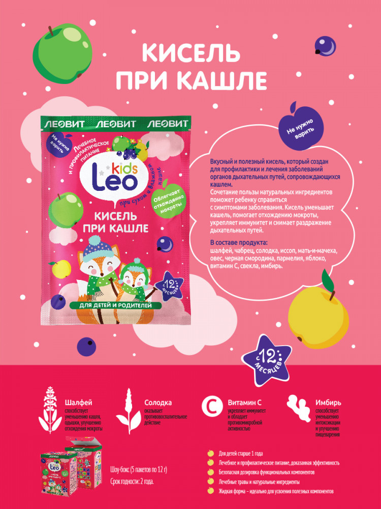 Leo Kids Кисель для детей при кашле-30% +60