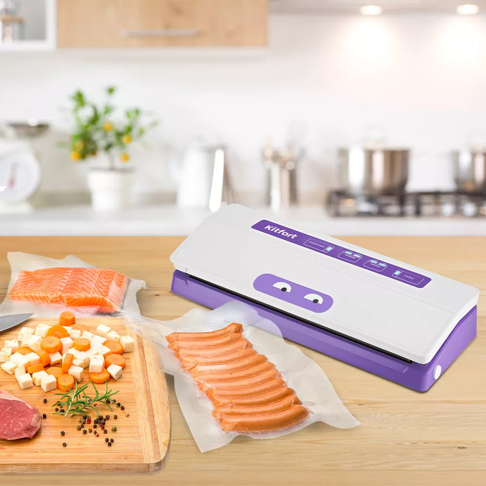 Вакууматор Kitfort КТ-1523 призван обеспечивать долгие сроки хранения ваших любимых продуктов. Продукты, упакованные под вакуумом, сохраняют свежесть и не портятся существенно дольше по сравнению с обычными условиями хранения.