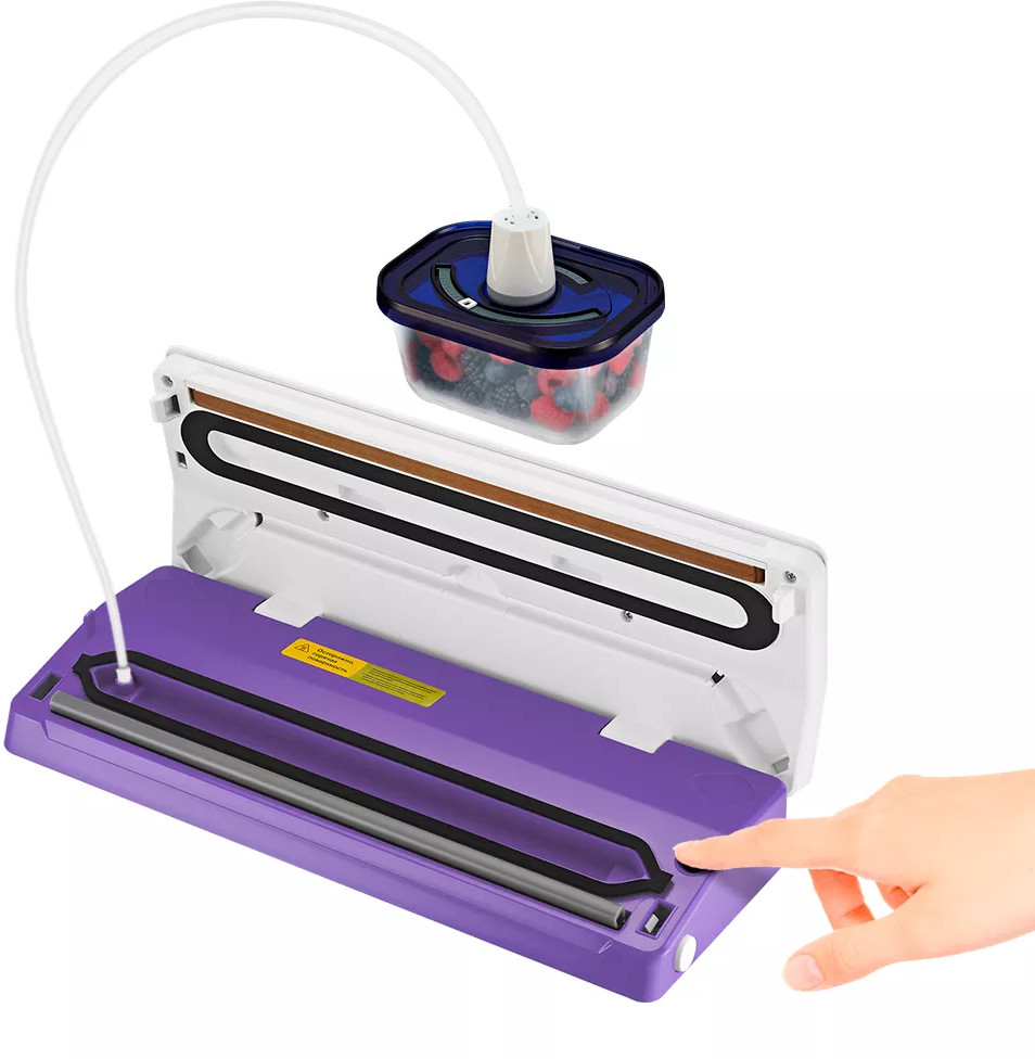 У вакууматора внутри находится фитинг для подсоединения шланга, с помощью которого можно вакуумировать еду в контейнеры. Для КТ-1523 можно дополнительно приобрести набор контейнеров КТ-1500-10.