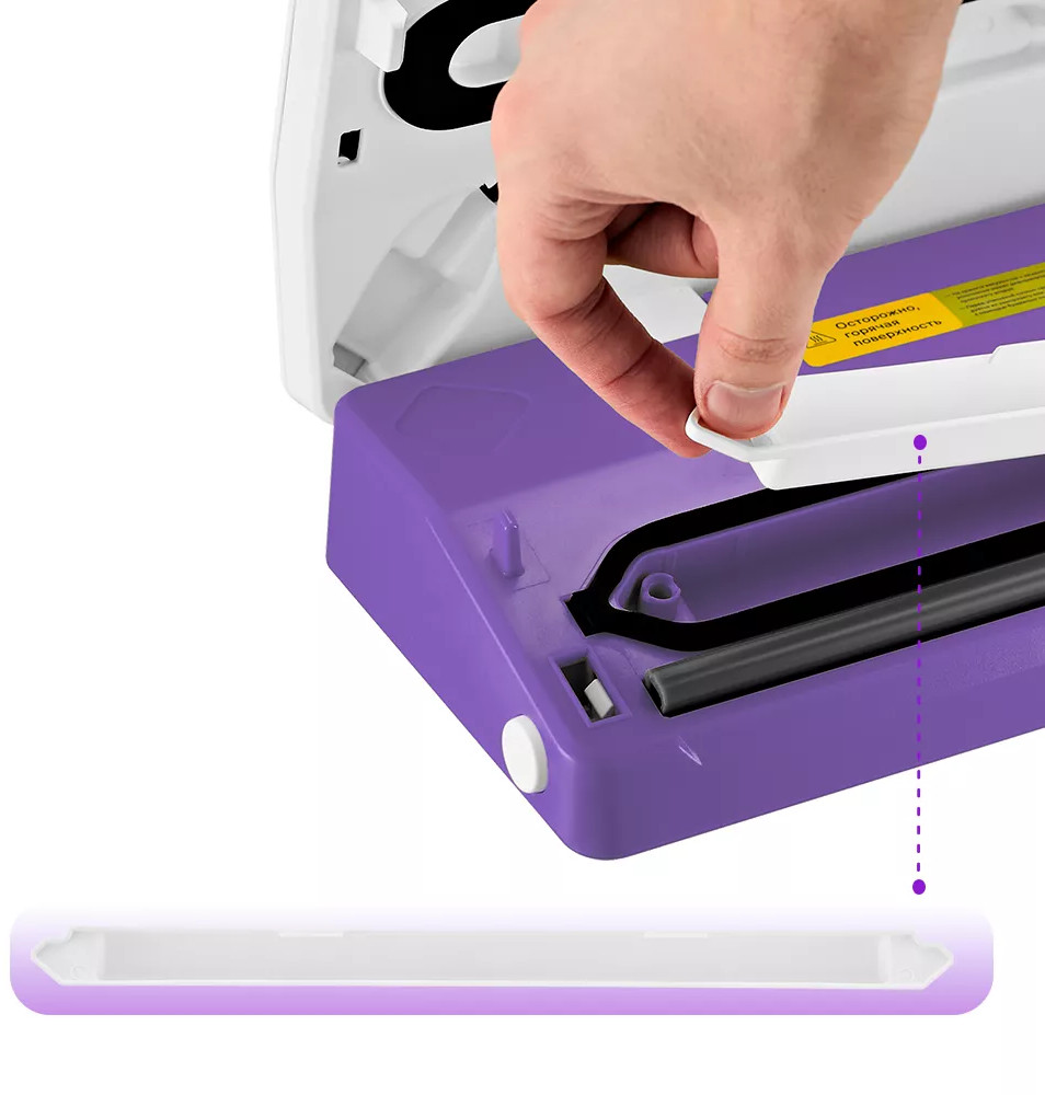 Для обеспечения надежности при выкачивании воздуха, вакууматор плотно закрывается. Чтобы открыть устройство нажмите одновременно боковые кнопки устройства, которые закрепляют положение крышки при выкачивании воздуха.