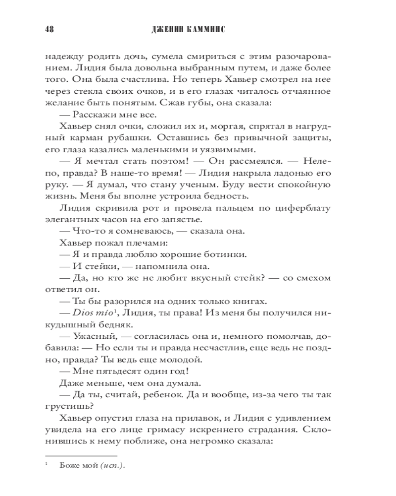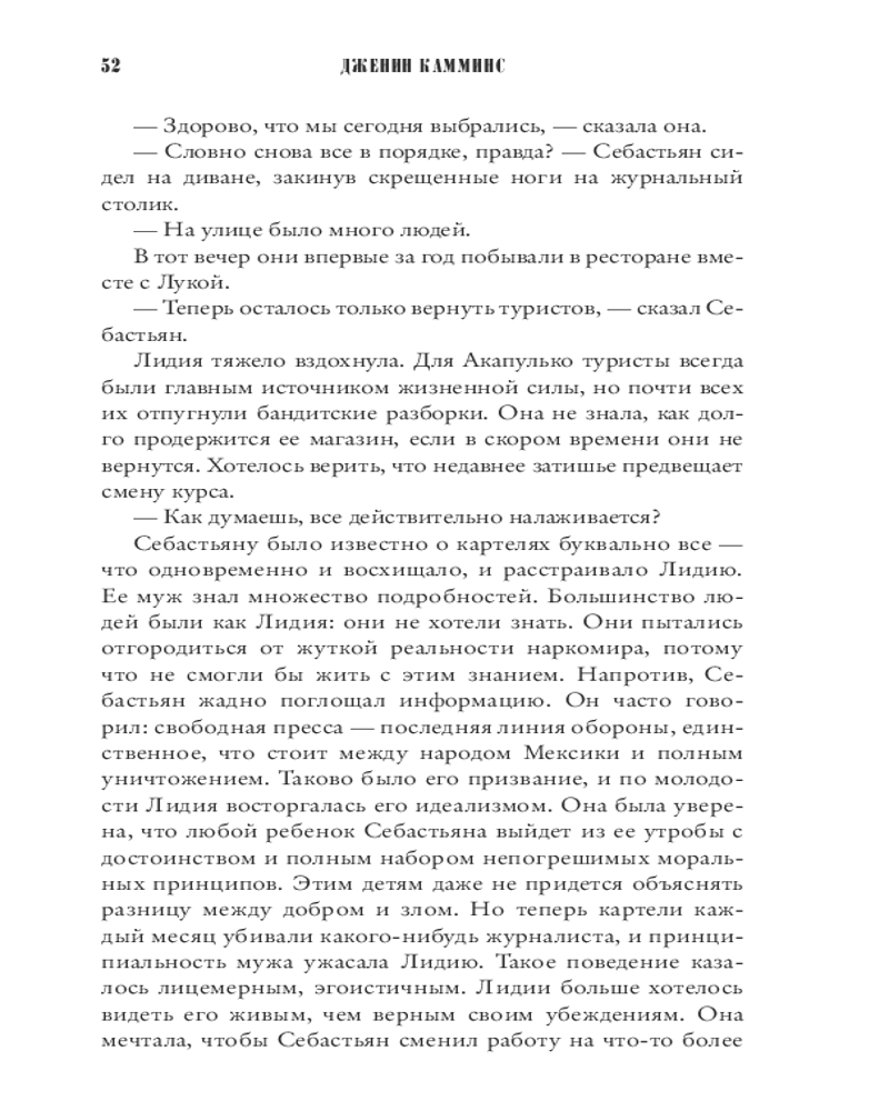 💳 Оплатить за товар можно при получении 🇰🇿 Есть бесплатная доставка по Казахстану от 1 дня 🎁 Копите бонусы с каждой покупки Лидия Перес владеет небольшим книжным магазином в мексиканском городе Акапулько, где живет с мужем Себастьяном, журналистом, и восьмилетним сыном Лукой. После публикации в газете подготовленного Себастьяном материала, разоблачающего местный наркокартель, бандиты устраивают кровавую бойню, в которой убивают всех родных и близких Лидии — шестнадцать человек. В живых чудом остаются только она и Лука. Понимая, что на них объявлена охота, мать и сын бегут из Акапулько. Спасая свои жизни, они направляются на север, к границе с Соединенными Штатами. И вскоре понимают, что пережитый ими кошмар — это только начало: дорога к новой жизни потребует от них поистине нечеловеческих усилий. |