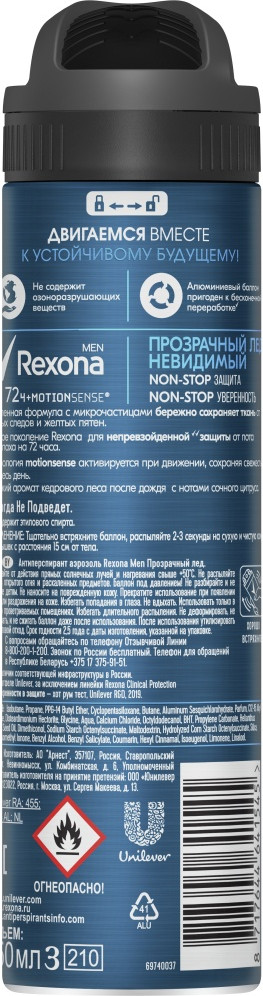 💳 Оплатить за товар можно при получении 🇰🇿 Есть бесплатная доставка по Казахстану от 1 дня 🎁 Копите бонусы с каждой покупки Свежая белая рубашка, новая черная футболка ― твоя одежда заслуживает не менее надежной защиты, чем ты сам. Вот почему мы разработали антиперспирант Rexona Men «Невидимый прозрачный лед». Активные ингредиенты некоторых дезодорантов-антиперспирантов могут смешиваться с солями пота и жировыми выделениями, тем самым еще больше способствуя появлению пятен в области подмышек. Этот антиперспирант работает по-другому. Он был специально разработан для предотвращения образования желтых пятен на белой одежде и белых — на черной. |