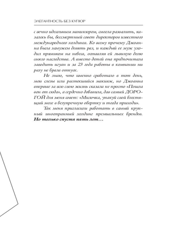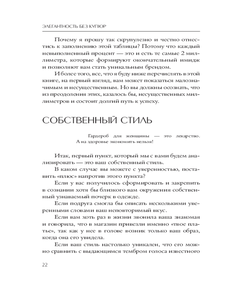 Элегантность без купюр. От просто имиджа к элегантному личному брендуВ данный момент этот товар отсутствует в продаже. Возможно, у нас найдется аналогичный или похожий товар здесь. Серия: Школа леди Марии Буше (Marii Boucher) — директор и ведущий преподаватель Австрийской Высшей Школы Этикета, блогер (tg.: @revizorroetiquette), ведущая телевизионного шоу «Пацанки 5» (Пятница!), эксперт по вопросам этикета в шоу «Перезагрузка» (ТНТ). Специалист международного класса по протоколу и бизнес-этикету. В этой книге собраны все секреты элегантности Марии Буше, которые позволили ей построить головокружительную карьеру на фундаменте элегантного личного бренда. Здесь вы найдете тесты для самопроверки, практические задания и упражнения, которые помогут вам довести свой образ до совершенства по 6 ключевым параметрам (внешний вид, голос и речь, бизнес-аксессуары, манеры поведения и эстетика движения, умение общаться, реперные точки имиджа), чтобы оставаться безукоризненно элегантной в любых обстоятельствах. Будь то на важной деловой встрече, на изысканном светском приеме или за мытьем посуды на кухне вашей пока еще однушки. Системный подход к построению элегантного личного бренда —6 больших разделов, охватывающих все грани элегантности! Увеличенный формат, объемное тиснение на обложке, вклейка с цветными фотографиями из личного архива автора. |