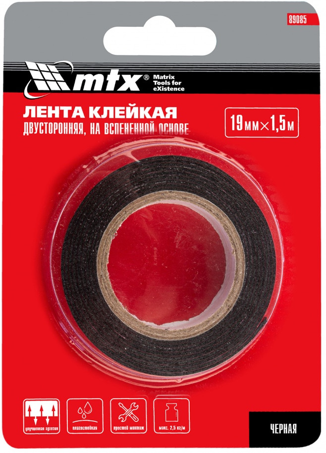 Двусторонняя клейкая лента на вспененной основе Matrix обеспечивает надежную фиксацию предметов между собой, в том числе и изделий, подверженных вибрационным нагрузкам: зеркал, крючков, автомобильных молдингов. Подходит для материалов с различной структурой: металла, стекла, керамики, пластика, картона и т.д.