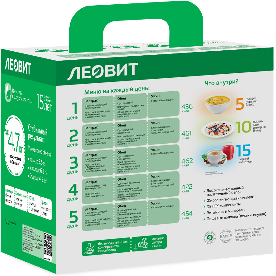 💳 Оплатить за товар можно при получении 🇰🇿 Есть бесплатная доставка по Казахстану от 1 дня 🎁 Копите бонусы с каждой покупки Программа питания «Вегетарианское меню» — это эффективная диета для тех, кто придерживается вегетарианской системы питания, и для тех, кто хочет похудеть. Программа рассчитана на рабочую неделю — 5 дней. Включает блюда быстрого приготовления для завтрака, обеда и ужина. По желанию вы можете использовать дополнительное питание калорийностью не более 500 ккал в день. |
