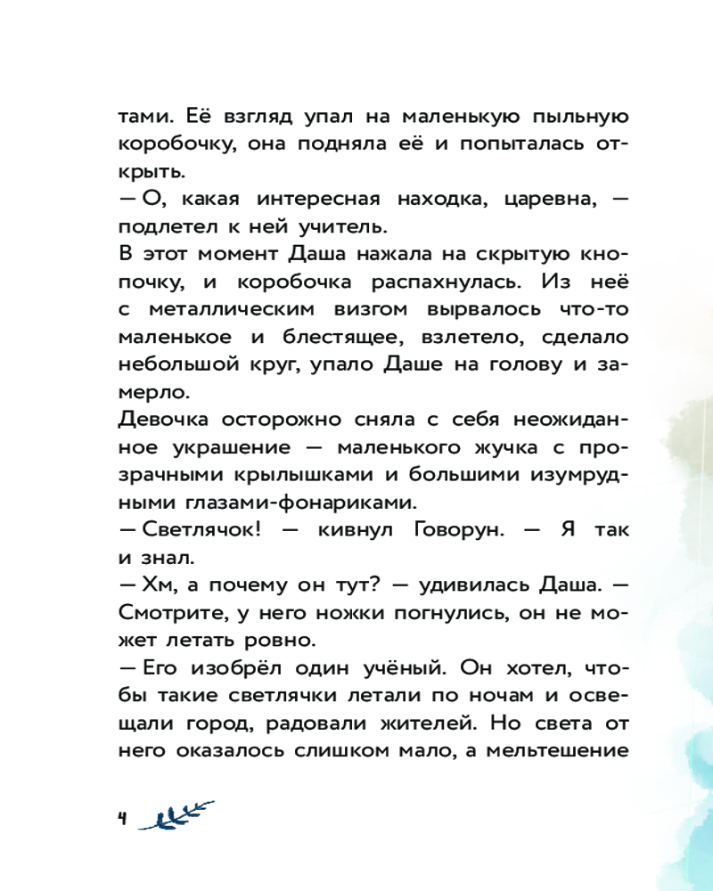 💳 Оплатить за товар можно при получении 🇰🇿 Есть бесплатная доставка по Казахстану от 1 дня 🎁 Копите бонусы с каждой покупки Серия: Царевны. Книги для чтения с картинками Хочешь узнать ещё больше о приключениях царевны Даши? Тогда читай эту книгу — в ней девочке предстоит отправиться в дальнюю дорогу, полную опасностей, чтобы добыть эликсир счастья и вылечить правителя Мудроземья. В компании своего учителя Говоруна Даша преодолеет любые препятствия! |