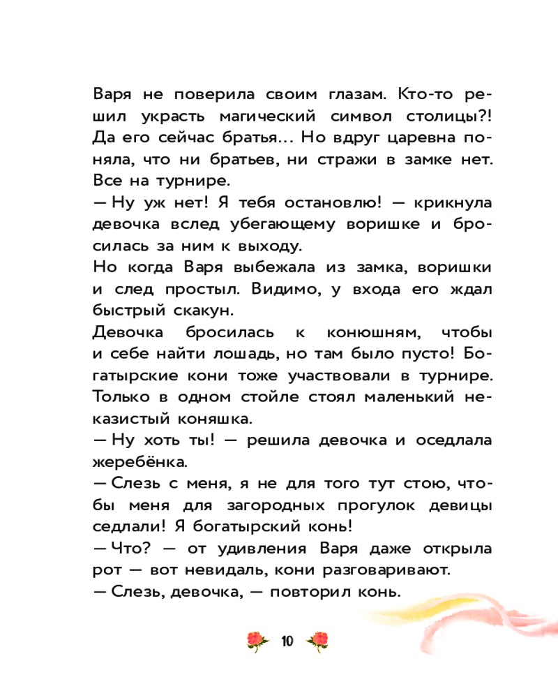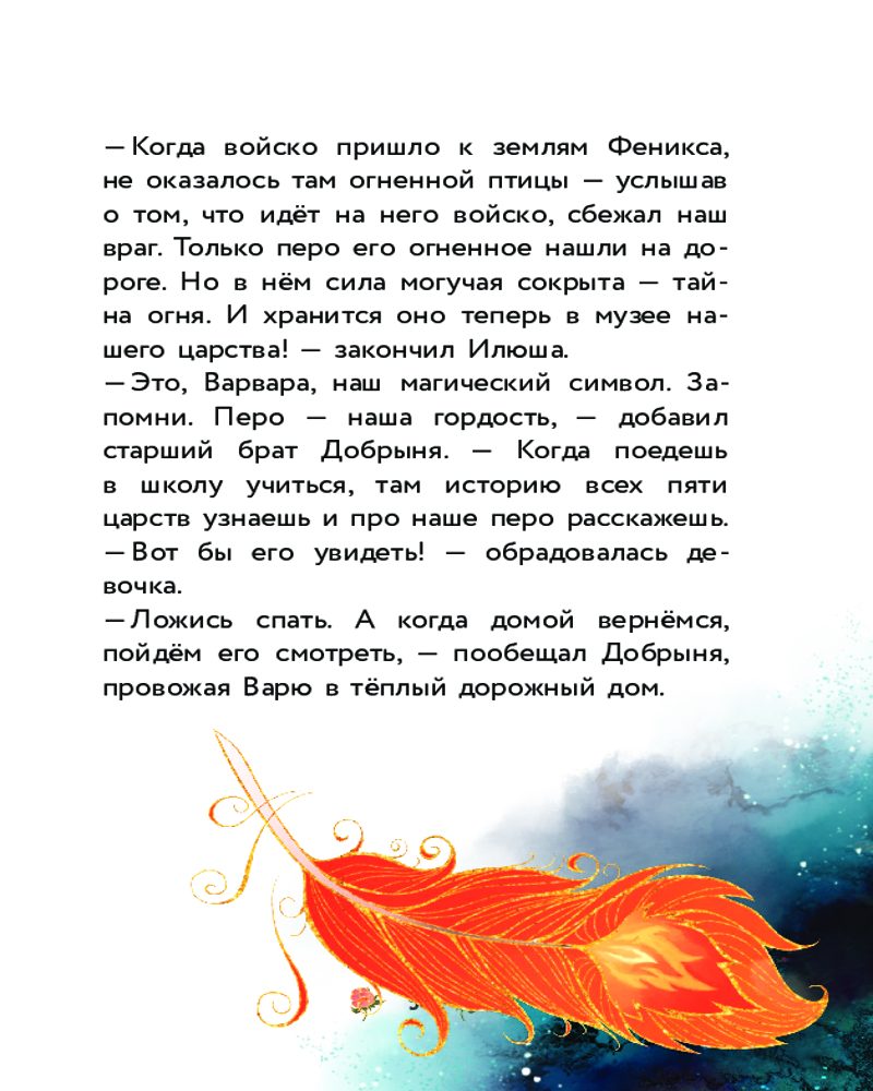 Варя и земли ФениксаВ данный момент этот товар отсутствует в продаже. Возможно, у нас найдется аналогичный или похожий товар здесь. Серия: Царевны. Книги для чтения с картинками Хочешь узнать ещё больше о приключениях царевны Вари? Тогда читай эту книгу — в ней девочке предстоит отправиться по стопам Феникса, узнать всю правду о похищенном огненном пере и спасти Солнцеморье от его истинного врага. В компании своего верного коня, а также Вещего Ворона Варя преодолеет любые препятствия! |