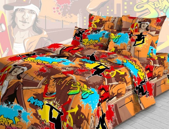 Детский комплект постельного белья Тeenager изготавливается из ткани бязь, один из наиболее популярных вариантов исполнения постельного белья. Состав бязи - 100% хлопок. В состав ткани входят гипоаллергенные красители, легко стирается, гладится и долго сохраняет цвет и прочность при многочисленных стирках. Преимуществом постельного белья из бязи является его долговечность, совмещенная со сравнительно невысокой стоимостью.
