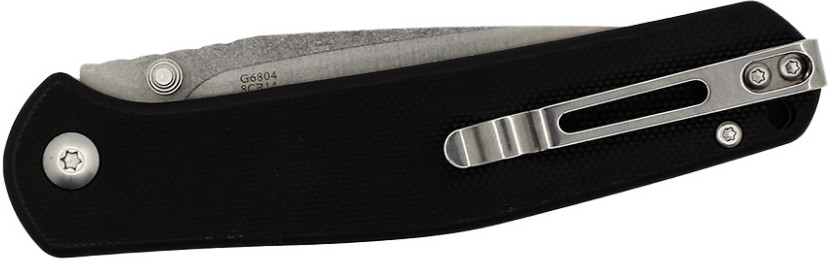 Складная модель Ganzo G6804-BK относится к типу карманных инструментов для ношения в городе и за его пределами. Нож в сложенном виде целиком помещается в ладони и предусматривает ношение в кармане или на поясе – за плотное крепление к одежде отвечает стальная клипса, зафиксированная парой винтов. Клинок изготовлен из марки 8CR14 – нержавеющей стали с содержанием хрома более 14%. Это делает металл невосприимчивым к коррозионным процессам и позволяет применять инструмент во влажной среде. Благодаря качественной закалке, твердость стали достигает значения 57 HRC, поэтому клинок можно применять для работы с материалами разной плотности без опасений за целостность режущей кромки.