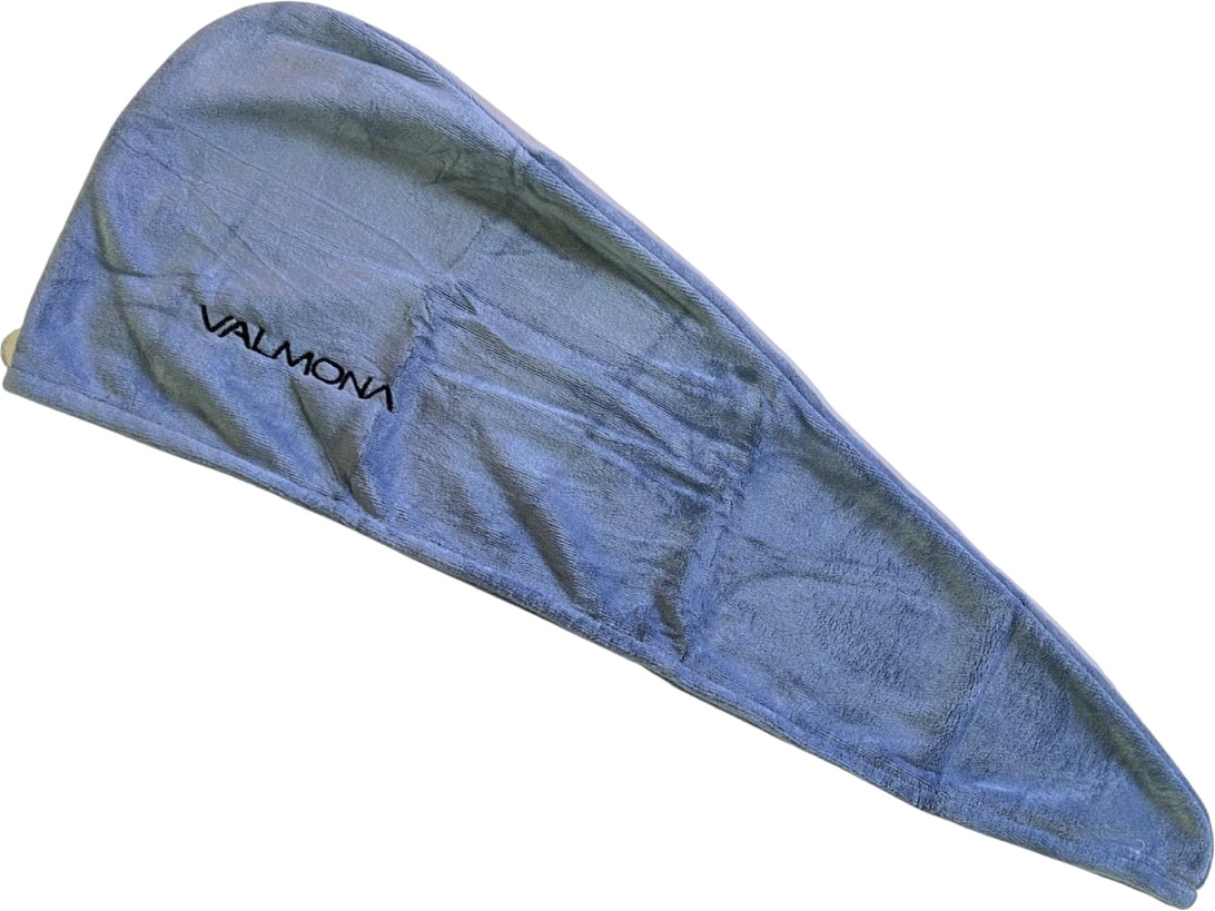 легко фиксируется на голове, есть пуговица и петля для фиксации. намного удобнее, чем большое полотенце накручивать