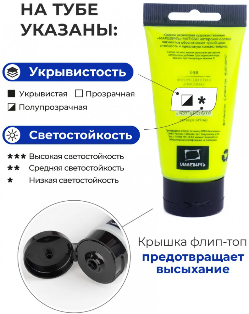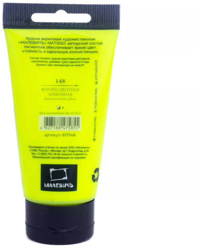 МалевичЪ Краска флуоресцентная акриловая, 148 лимонная