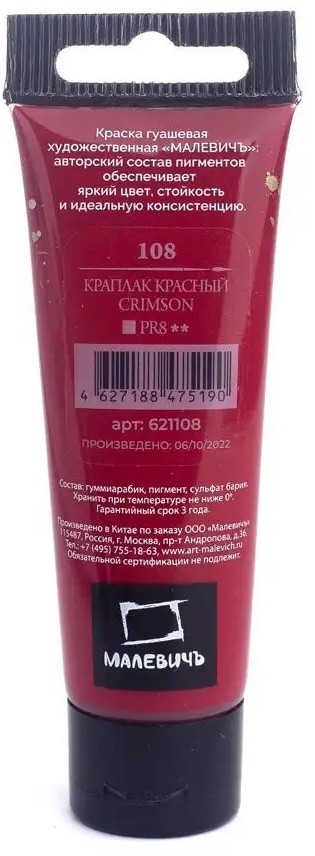 МалевичЪ Гуашь, №108 краплак красный