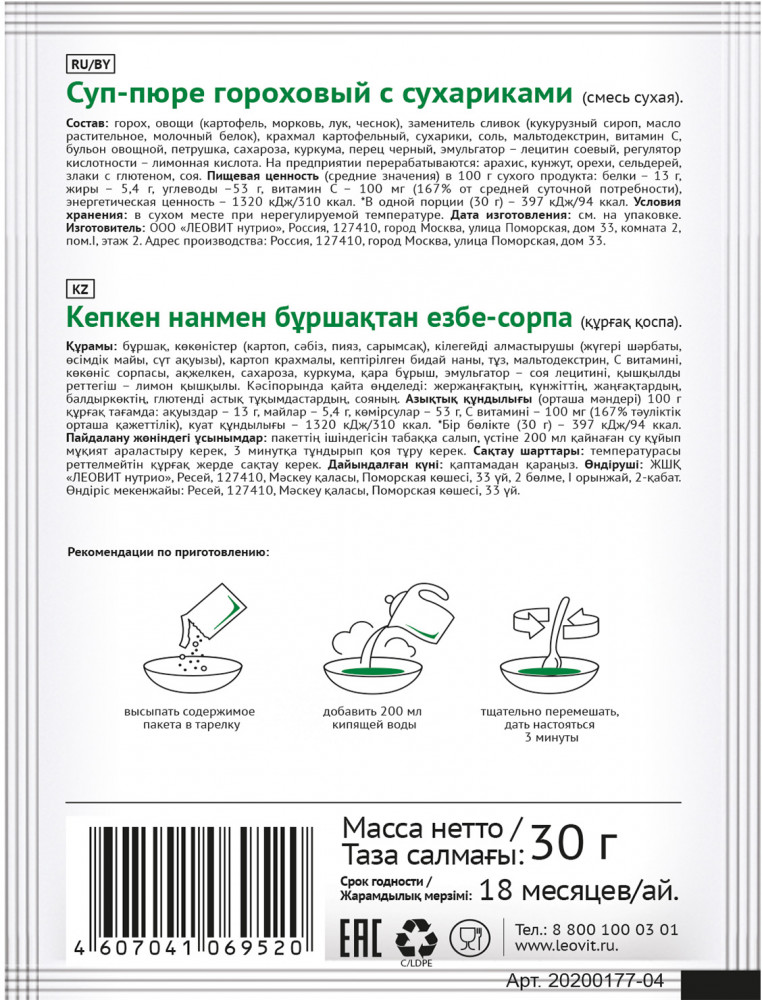 Худеем за неделю Суп-пюре гороховый с сухарикамиВ данный момент этот товар отсутствует в продаже. Возможно, у нас найдется аналогичный или похожий товар здесь. Знаете ли вы, что все бобовые, в том числе горох, содержат много растительного белка и поэтому быстро утоляют голод? Не зря их часто используют в приготовлении различных блюд. Одним из самых известных из них является именно гороховый суп. Мы приготовили его по особому рецепту, добавив овощи, зелень, пряности, а также пшеничные сухарики. В одной порции — всего 94 ккал. Суп достаточно заварить кипятком на 3 минуты! Вы всегда сможете взять его с собой и быстро приготовить. |