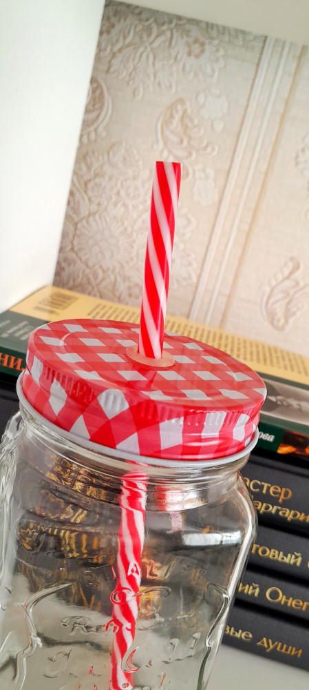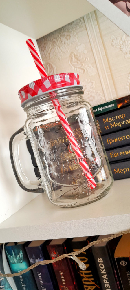 Шикарная кружка из прочного стекла, крышка закрывается плотно, трубочки из хорошего пластика