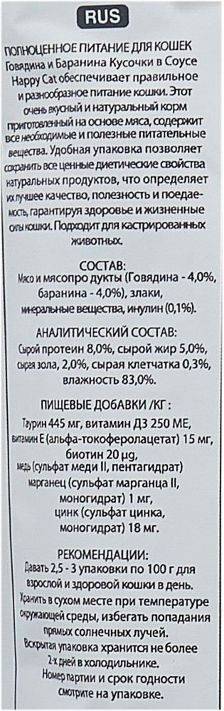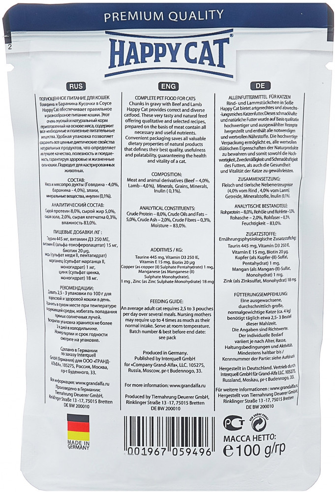 Happy cat Пауч для кошек «Говядина и баранина в соусе»