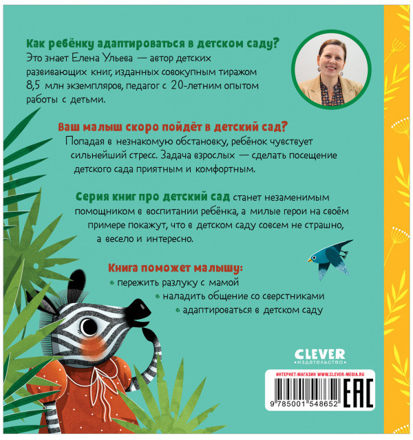 💳 Оплатить за товар можно при получении 🇰🇿 Есть бесплатная доставка по Казахстану от 1 дня 🎁 Копите бонусы с каждой покупки Серия: Сказки про детский сад Как ребёнку адаптироваться в детском саду? Это знает Елена Ульева — автор детских развивающих книг, изданных совокупным тиражом 6 млн экземпляров, педагог с 20‑летним опытом работы с детьми. Ваш малыш скоро пойдёт в детский сад? Попадая в незнакомую обстановку, ребёнок чувствует сильнейший стресс. Задача взрослых — сделать посещение детского сада приятным и комфортным. Серия книг про детский сад станет незаменимым помощником в воспитании ребёнка, а милые герои на своём примере покажут, что в детском саду совсем не страшно, а весело и интересно. Книга поможет малышу — пережить разлуку с мамой, наладить общение со сверстниками, адаптироваться в детском саду. |