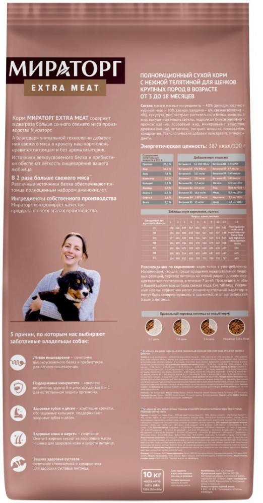 Мираторг Корм для щенков крупных пород с нежной телятиной «Extra Meat»+1502