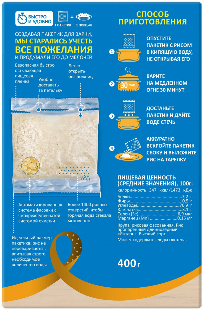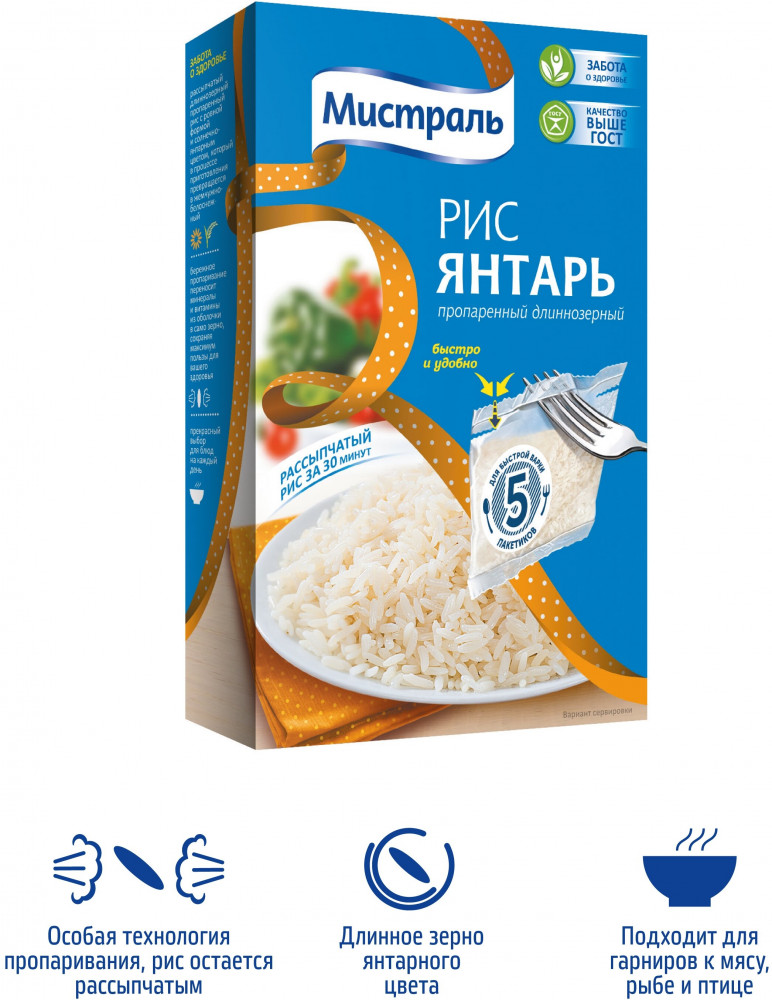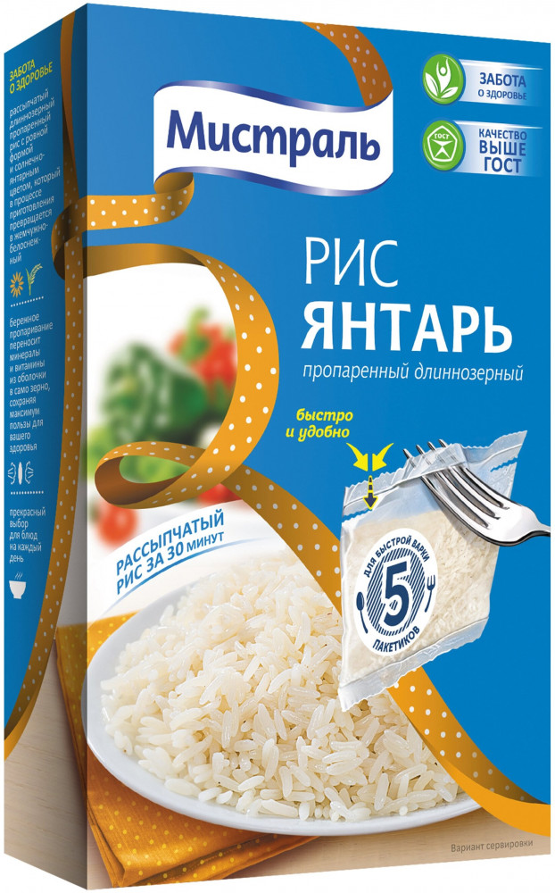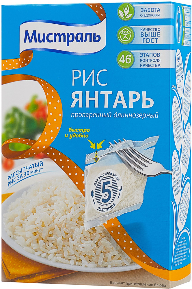 Мистраль Рис длиннозерный «Янтарь» в варочных пакетахВ данный момент этот товар отсутствует в продаже. Возможно, у нас найдется аналогичный или похожий товар здесь. Рис Мистраль «Янтарь» — это отборный пропаренный рис, прошедший тщательную очистку, благодаря чему его зерна имеют одинаковую ровную форму и янтарный цвет. Рис Янтарь хорош как самостоятельное блюдо, а также в качестве гарнира к мясу, рыбе и птице. Чтобы всегда иметь гарнир под рукой, готовый рис можно хранить в холодильнике в течение одной недели, а в морозильной камере — до шести месяцев. Он остается таким же вкусным даже после повторного разогревания. |