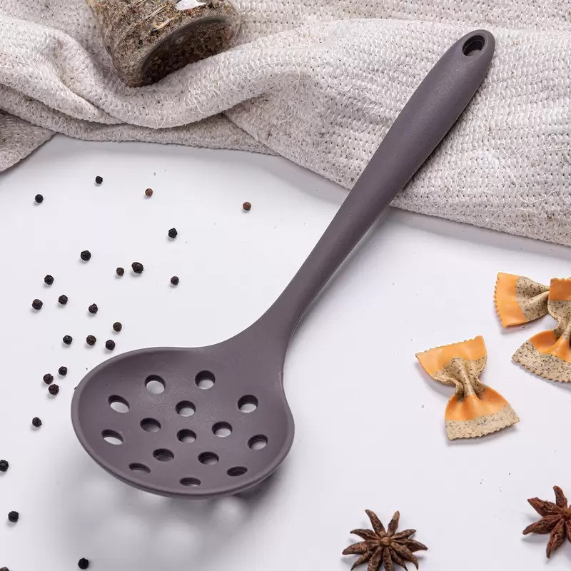 удобная, тяжёленькая. все предметы меняю на силикон. удобно вылавливать мягкую отваренную еду, не повреждает её и не нагревается.
