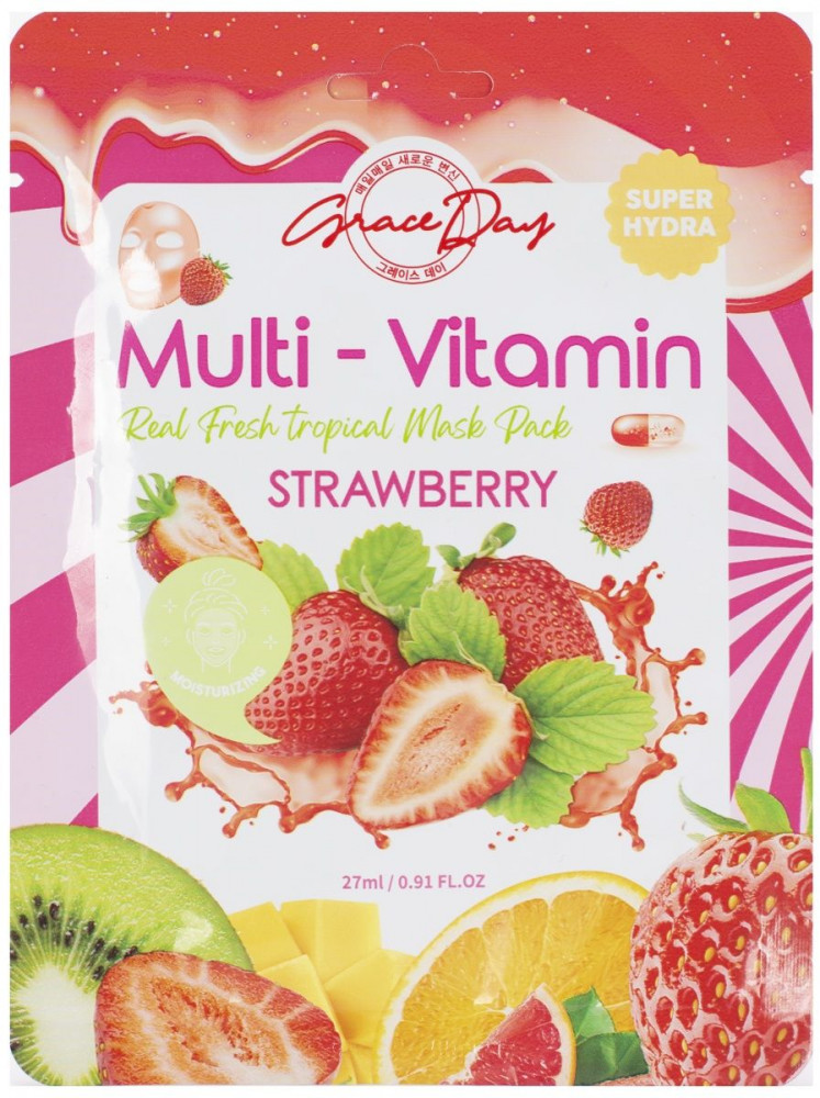 Grace Day Маска для лица тканевая мультивитаминная с экстрактом клубники