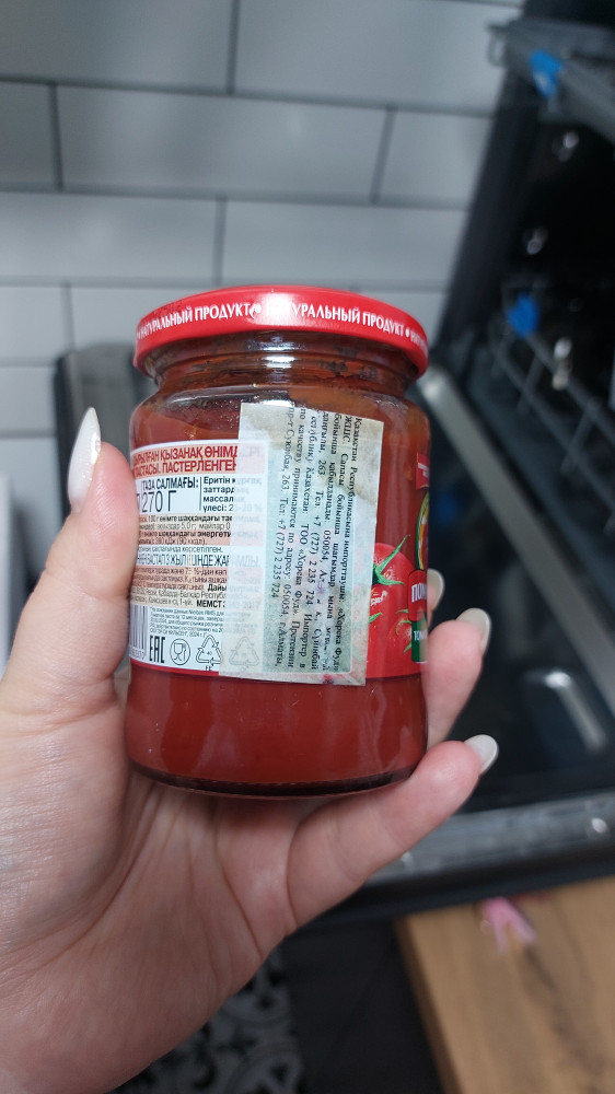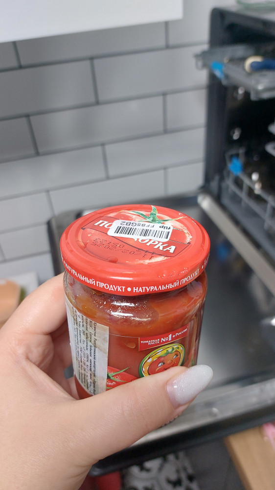 томатная паста была вся липкая. пролился соевый соус. ну ладно ещё это ничего. но начала её открывать -крышка просто открылась. не было хлопка нужного для нового товара. товар на вид старый. крышка зацарапанная. к сожалению пришлось выкинуть.