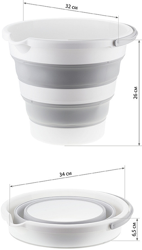 Очень красивый и компактный , использовала сложила и спрятала . В интерьере смотрится красиво. Купила всю серию ( ковш, тазик и ведро) убрала старые цветные